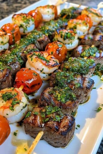 Brochetas Surf & Turf se encuentran con Chimichurri