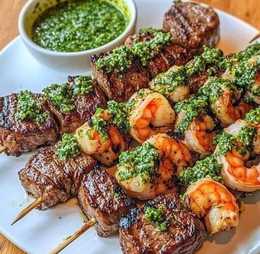 ¿Buscas una receta elegante y deliciosa para tu próxima parrillada? Estas brochetas combinan lo mejor de la tierra y el mar con un toque vibrante de chimichurri casero. Perfectas para sorprender a tus invitados o disfrutar en familia.