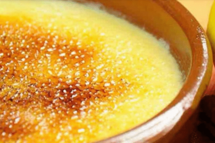 En este punto, retiramos la crème brûlée del fuego y la distribuimos en recipientes individuales, no muy hondos. Deje enfriar a temperatura ambiente, luego refrigere durante 3 a 4 horas. Al servir la crema brulée, agregue una generosa capa de azúcar encima (aproximadamente 1 cucharada y ½ para cada una). Con un soplete de cocina, quema el azúcar hasta que se caramelice, formando una fina capa de caramelo. La crema brulée está lista para disfrutar.