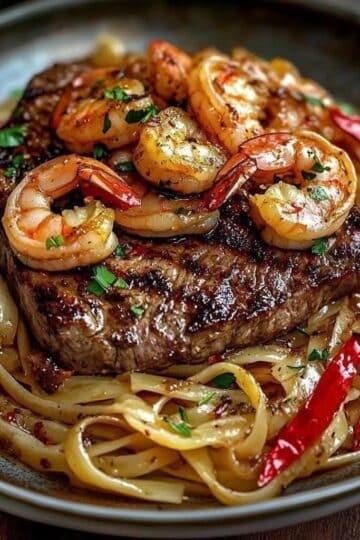 Fideos de Ajo y Surf y Césped: Un Festín de Sabores Inolvidables